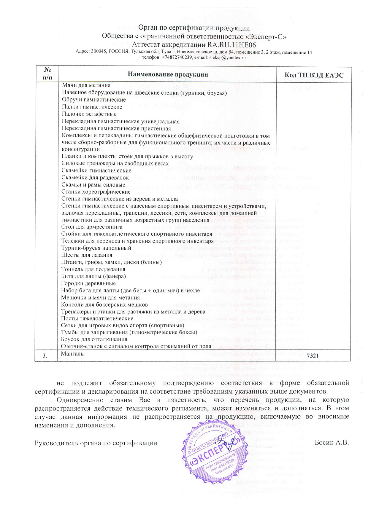 Сертификат соответствия инвентарь 1